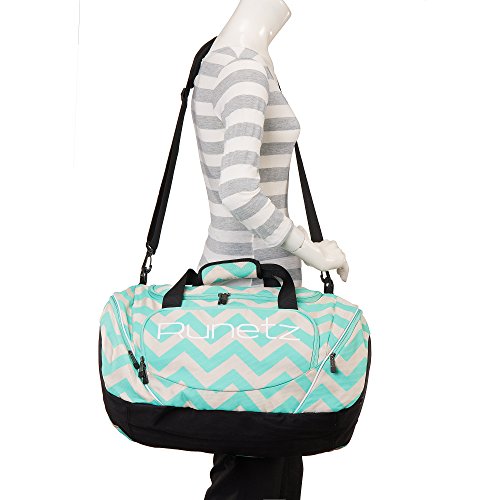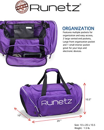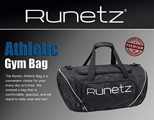 Product Description Runetz - Sport Gym Bag STURDY DURABLE: Athletic Bag is a convenient choice for your Every Day Activities COMFORTABLE: Adjustable Detachable Padded Shoulder Strap for comfort and Dual Handles for easy carrying POCKETS: Multiple Zipped pockets for organization and easy accesses - with big pocket for shoes towel GREAT SIZE ROOMY ENOUGH: Large front organization pocket and 1 small interior pocket great for your keys and electronic devices. LAUNDRY / SHOES PACKET: Vented side pocket, perfect for laundry or shoe storage MATERIAL: Polyester Product Dimensions: 20 x 10 x 10.5 inches INTENDED USE: Gym, Sport, Travel, Carry-on, Luggage, Camping, Hiking and More! Colors Available: Black Navy Blue Purple Teal Blue Hot Pink Lime Green Chevron Gray Chevron Teal 0