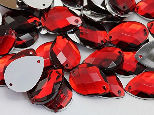 KraftGenius 18x13mm Teardrop Flat Back Sew On Beads for Crafts - 50 Pieces