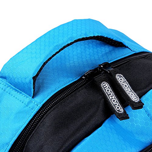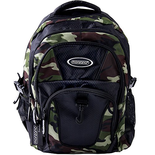 -. Brand : Monzana -. Feature : 30 Liter Fassungsvermögen - 3 große Hauptfächer mit Reißverschlüssen / gepolsterte und verstellbare Schultergurte / 1 kleineres Vorderfach mit Reißverschluß und zusätzlichem Karabinerhaken / gepolstertes Notebookfach mit Klettverschluss / 2 Seitentaschen mit Netzgewebe und Gummizug als Flaschenhalter -. ProductGroup : Koffer, Rucksäcke & Taschen -. ProductTypeName : LAGE -. Title : Monzana Rucksack 30L mit 4 Fächer in verschiedenen Farben inkl. Notebookfach