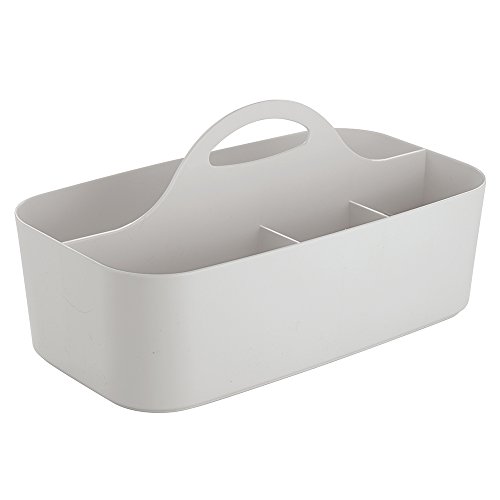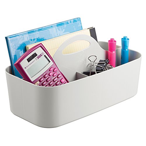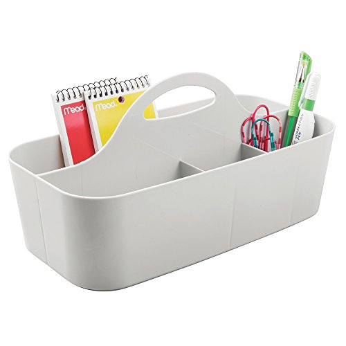 mDesign Office Supplies Desk Organizer Tote for Scissors, Pens, Pencils, Notepads, Markers, Highlighters, Tape - Light Gray