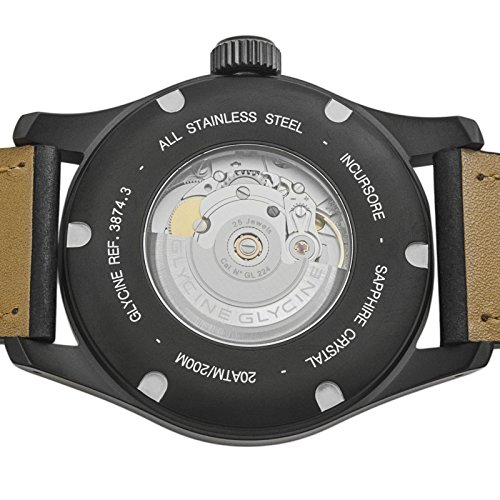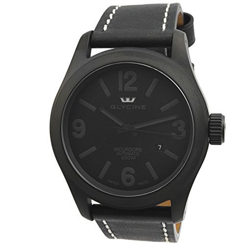 -. Title : Glycine Incursore Automatic PVD Coated Stainless Steel Mens Strap Watch Black Dial Calendar 3874.999