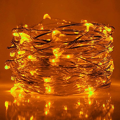 HAHOME Waterproof Led String Lights,33Ft 100 LEDs Indoor and Outdoor Starry Lights with Power Supply for Christmas Wedding and Party Decoration,Yellow