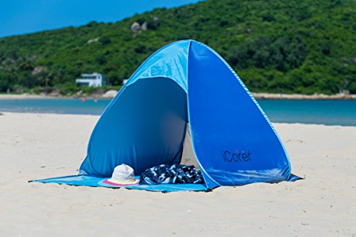 If you're looking for an easy-to-assemble tent for the beach, park, or even a warm-weather campsite, you've found it in the Pop Up Beach Tent from iCorer. It automatically pops up and opens in 1 second and folds back down in only 3 seconds. It's super lightweight at only 2.2 pounds and easily carried to the beach, park and campground.