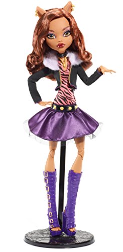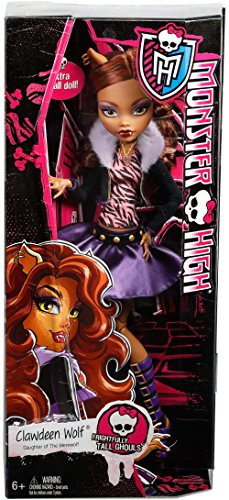 -. Binding : Toy -. Brand : Monster High -. EAN : 0887961207675 -. Feature : At 17 inches tall, this Monster High doll is larger than un-life! / Clawdeen Wolf doll wears her signature outfit with killer details in extra-large scale! / The daughter of the Werewolf is fashionably fierce in her classic purple and animal P.R.Int and topped with a sleek jacket with "fur" collar / Uhhh-mazing accessories include her to-die-for tall peep-toe boots / A doll stand is included to capture scary cool poses and monsterrific moments -. IsAdultProduct : 0 -. ItemPartNumber : DHC41 -. Label : Monster High -. Manufacturer : Monster High -. Model : DHC41 -. MPN : DHC41 -. PackageQuantity : 1 -. PartNumber : DHC41 -. ProductGroup : Toy -. ProductTypeName : TOYS_AND_GAMES -. Publisher : Monster High -. Size : 17 Large -. Studio : Monster High -. Title : Monster High 17" Large Clawdeen Wolf Doll -. UPC : 887961207675 -. Warranty : 1 year warranty against manufacturer defects
