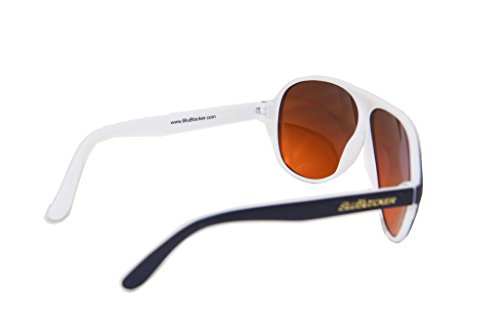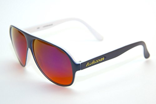 -. Title : Official BluBlocker Navy Blue/White Aviator Sunglasses with Blue Mirror Lens
