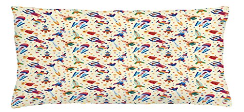 Spaceship Throw Pillow Cushion Cover by Ambesonne, Colorful Cartoon Dotted Background with Spac...
