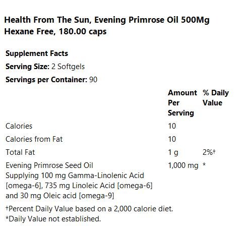 Studio : Health From The Sun Publisher : Health From The Sun Binding : Health and Beauty Product Description Evening Primrose Oil 500 - From premium Seeds
