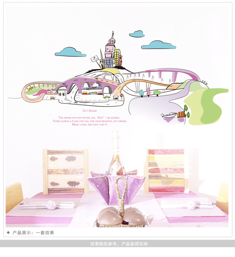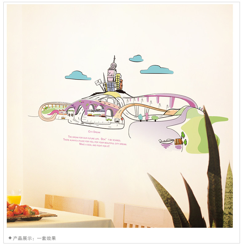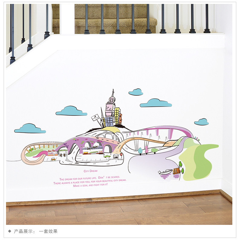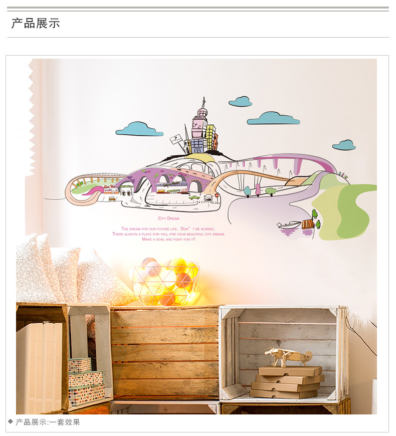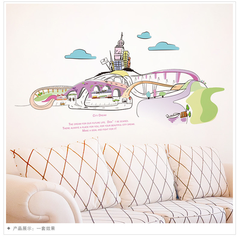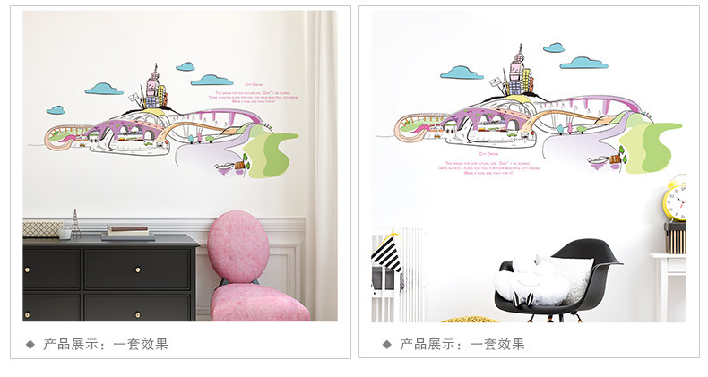 卧室装饰品墙贴背景墙壁贴纸卡通宿舍儿童房间沙发素描城市道路