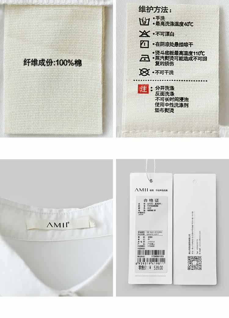 | 洗涤标准: | 不可浸泡悬挂晾干不可干洗110℃以下垫布熨烫不可漂白40℃以下手洗 |