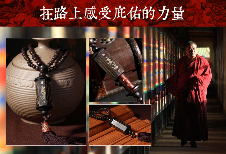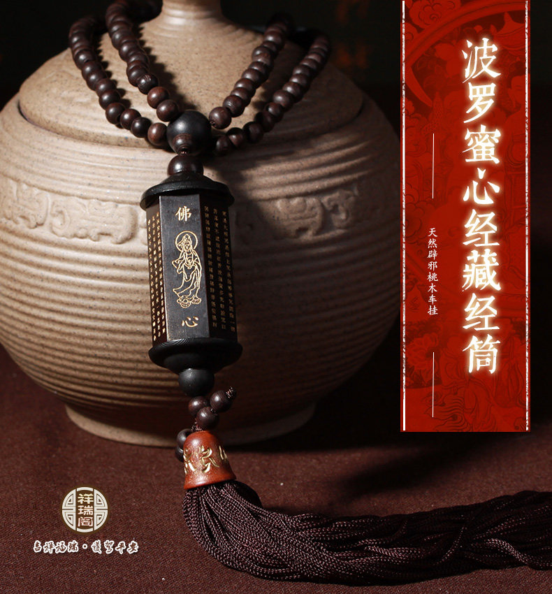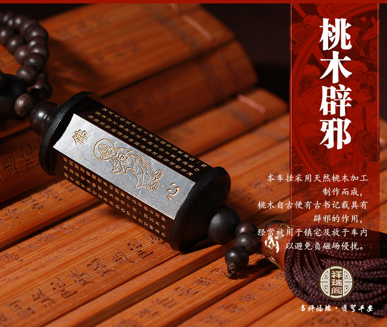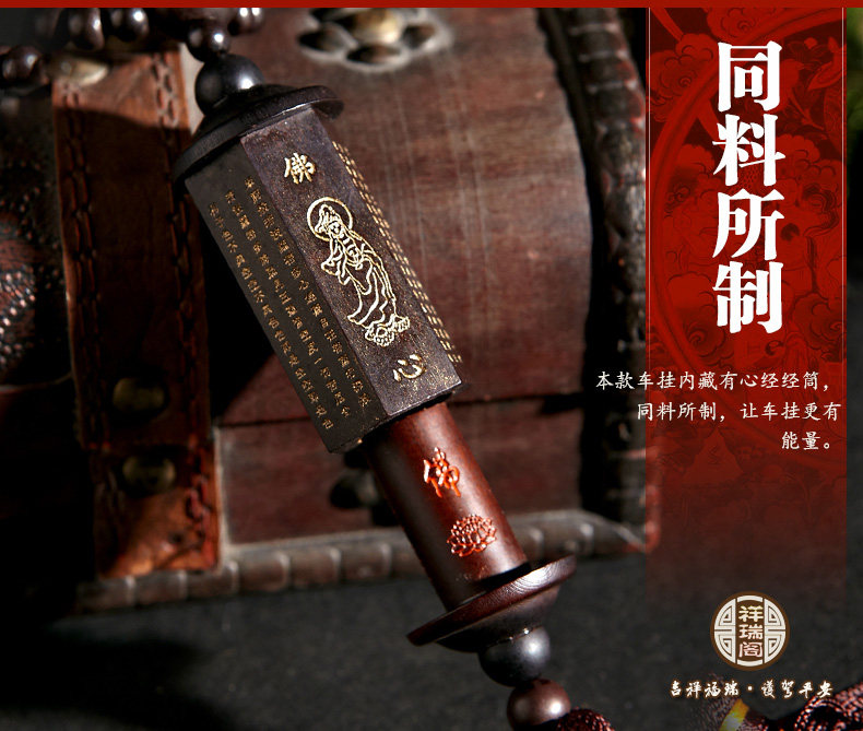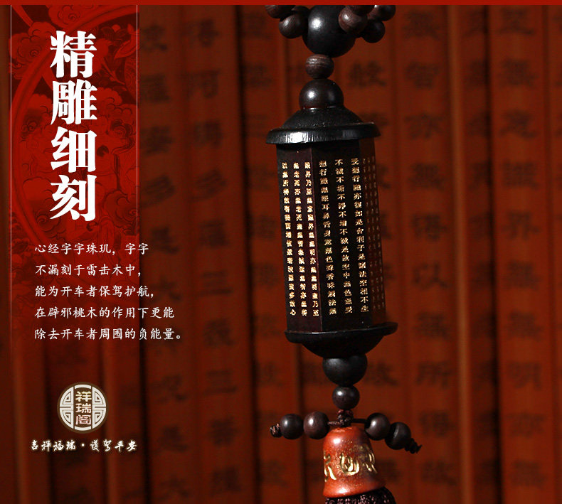 汽车挂件 车内装饰用品保平安后视镜挂饰 桃木心经筒车上挂坠