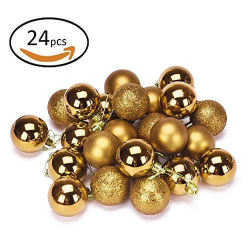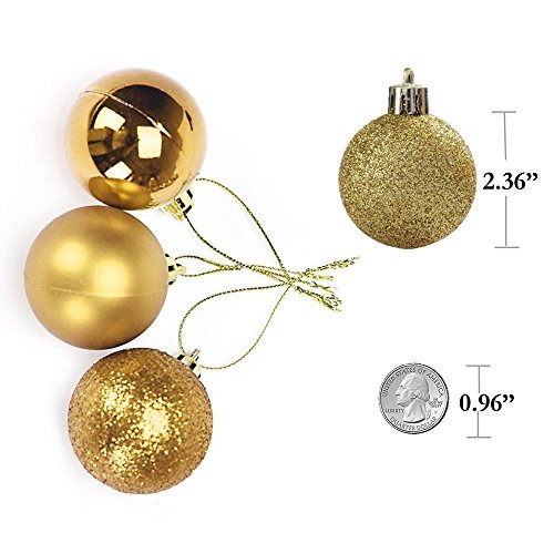 Christmas Ball Ornaments, HotPar 24ct 60mm/2.36" Shatterproof Christmas Ball Ornaments with Drilled Cap for Holiday Wedding Party Decoration, Tree Ornaments (Gold)