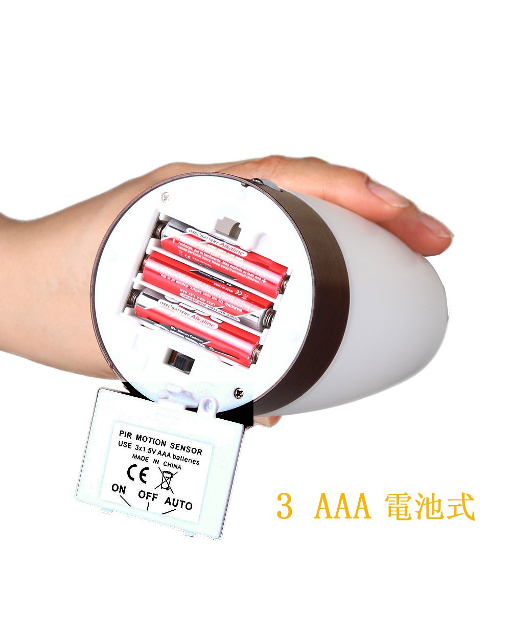 ♦ Light bulb: White LED 1.0 W × 3 ♦ Sensing range: about 3 to 4 m ♦ Brightness: 40 to 45 lumens