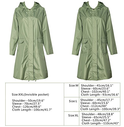 Color:Green/USsize:Shoulder--41cm/16.1";Sleeve--60cm/23.6";Chest--102cm/40.1";Cloth Length--93cm/36.6" ColorGreen(Large/Invisible pocket)/USsize:Shoulder--50cm/19.6";Sleeve--70cm/27.5";Chest--126cm/49.6";Cloth Length--106cm/41.7" Waterproof, breathable and packable, this rainy-day-mvp women's jacket is built to shield you from rain out on the trail . when the sun returns. An Omni-tech membrane combines with full seam sealing to keep you dry and comfortable both on the exterior and interior. 0