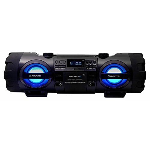 Hier hat der Hersteller Manta ein echtes Multitalent entworfen. Die Boombox MM275 kann alles was ein modernes Soundsystem können muss. CD, USB, Radio, 3,5mm Klinke, Gitarren -Anschluss (6,35mm), Mikrofon-Anschluss (6,35mm) und Anbindung über Bluetooth - Alles kein Problem.