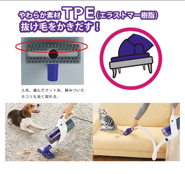 ○ペットの抜け毛をかき取り吸込む毛トラッシュブラシ付属
