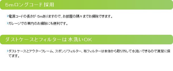 電源コードの長さが 5mありますので、お部屋の隅々までお掃除できます。