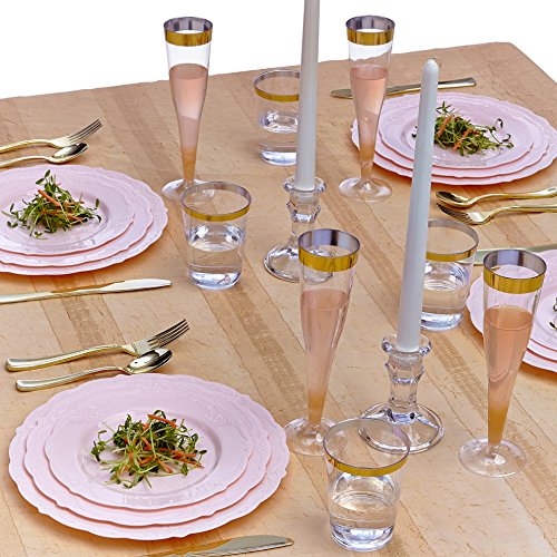 MODERN ELEGANT ECONOMICAL HEAVY PLASTIC PLATES Disposable Dinnerware Set | Vintage Collection by Silver Spoons | 30 Pcs | 10 X Dinner Plates 10 X Dessert Plate and 10 X Salad Plate | Blush