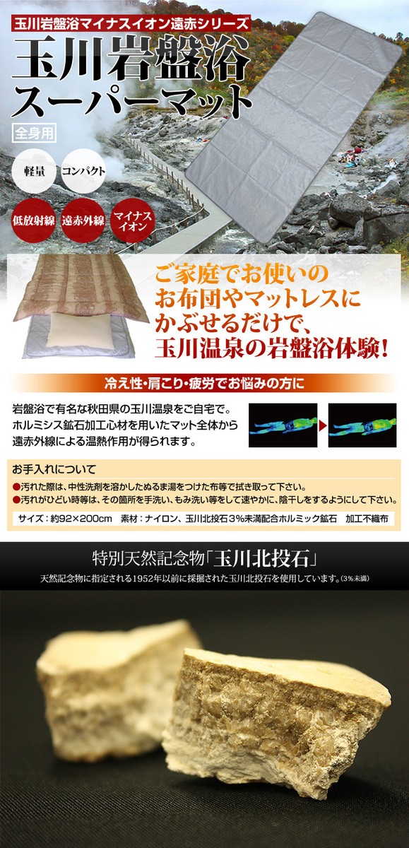 【商品名】玉川岩盤浴マイナスイオン遠赤シリーズ 玉川岩盤浴スーパーマット(全身用)