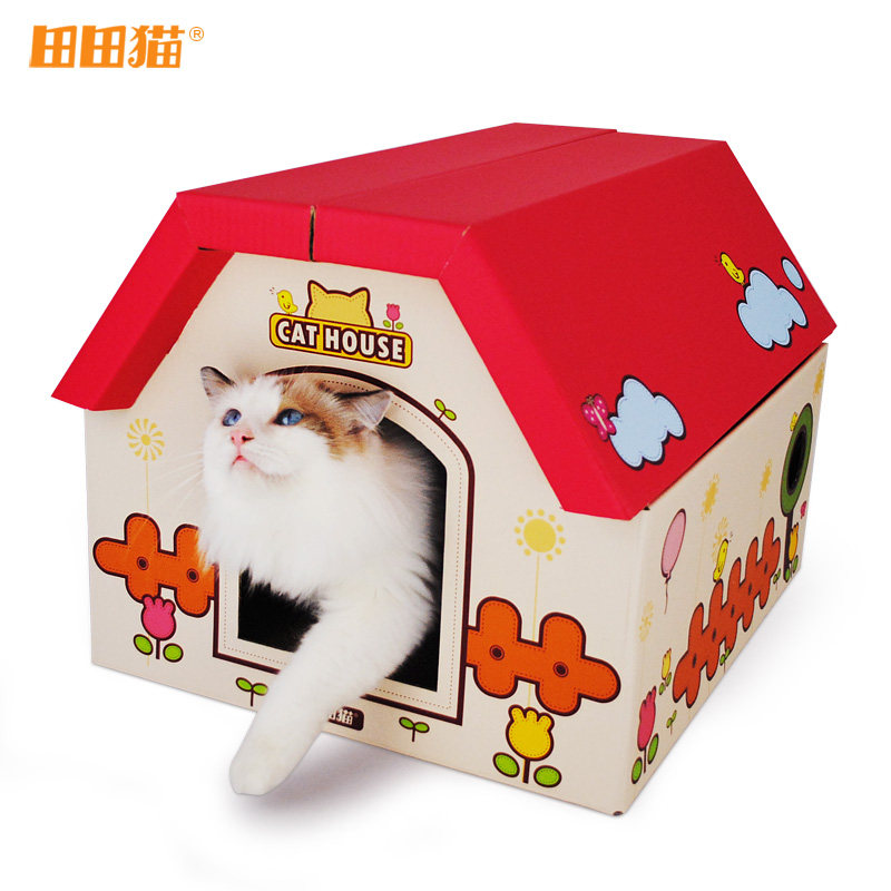田田猫肥猫可折叠瓦楞纸猫房子/猫抓板/猫窝/猫盒子