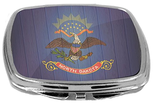 Rikki Knight Compact Mirror on Distressed Wood Design, North Dakota Flag, 3 Ounce