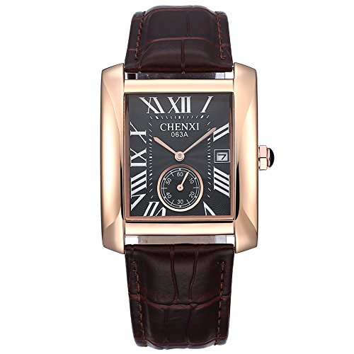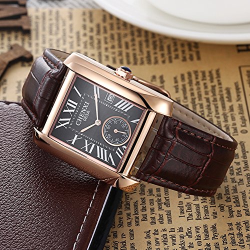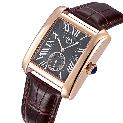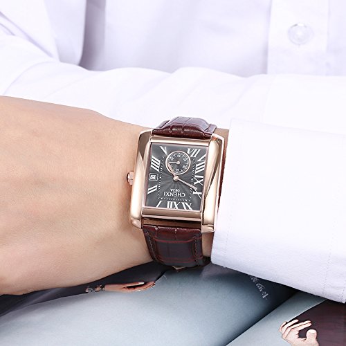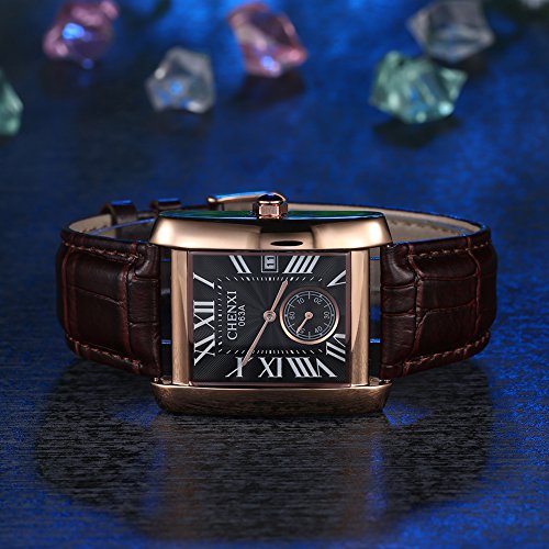 CHENXI Rockyu 감정 브랜드 인기 맨즈 손목시계 미니멈 방수 내구 캘린더 손목시계 레이디스 일본제 쿼츠 블랙 사파이어 유리 스테인레스 브라운 가죽 밴드 밴드 [병행수