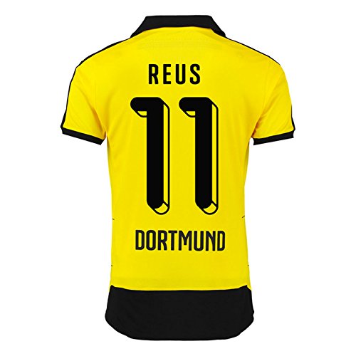 Official Marco Reus football shirt for Borussia Dortmund. This is the new Borussia Dortmund home shirt for the 2015-16 Bundesliga season which is manufactured by Puma and is available in adult sizes S, M, L, XL, XXL, XXXL and kids sizes small boys, medium boys, large boys, XL boys. This Dortmund football shirt is yellow and black in colour and comes with Marco Reus shirt printing on the jersey.