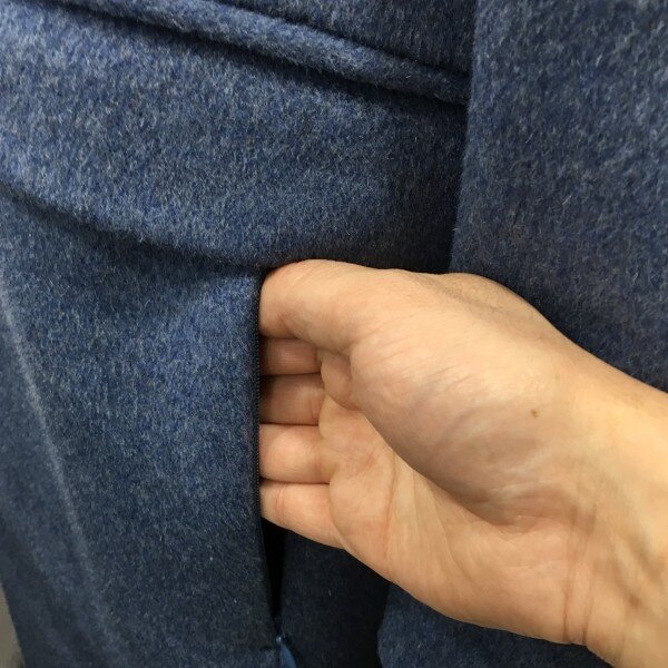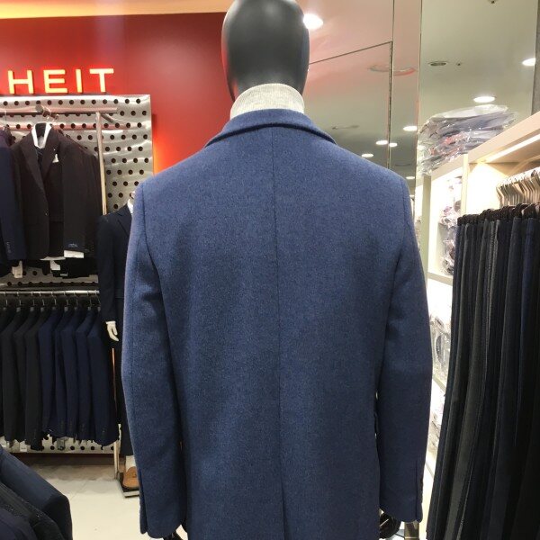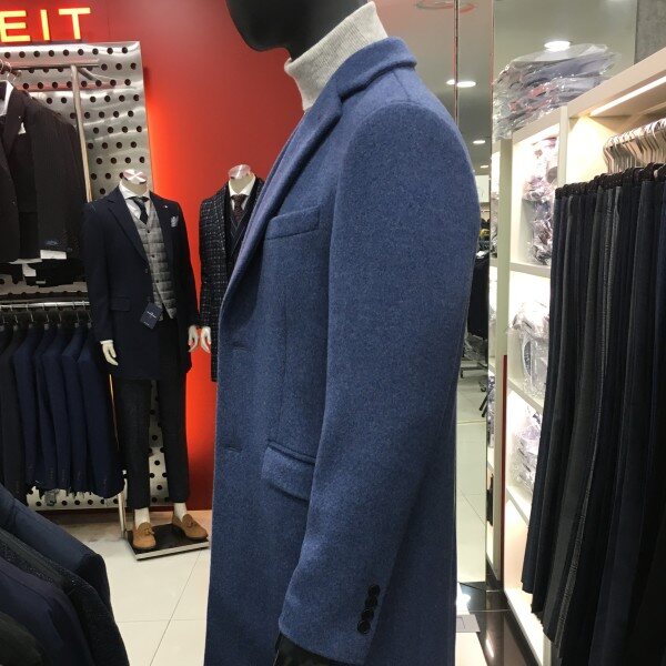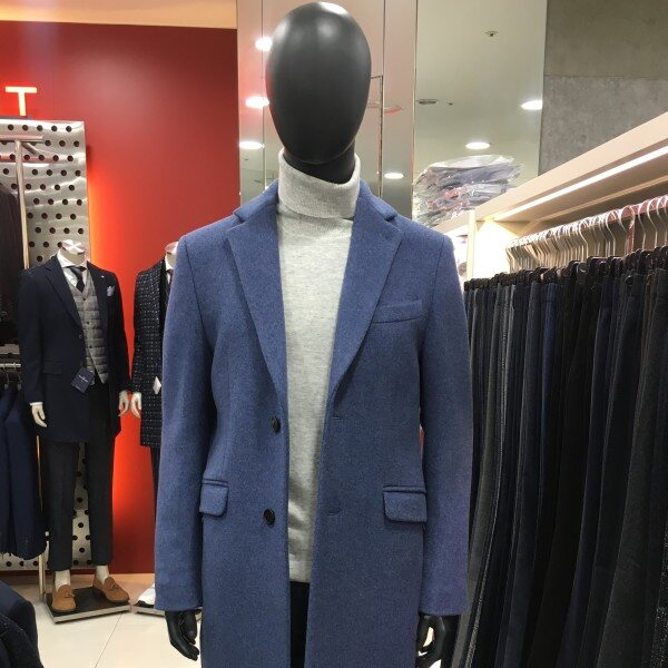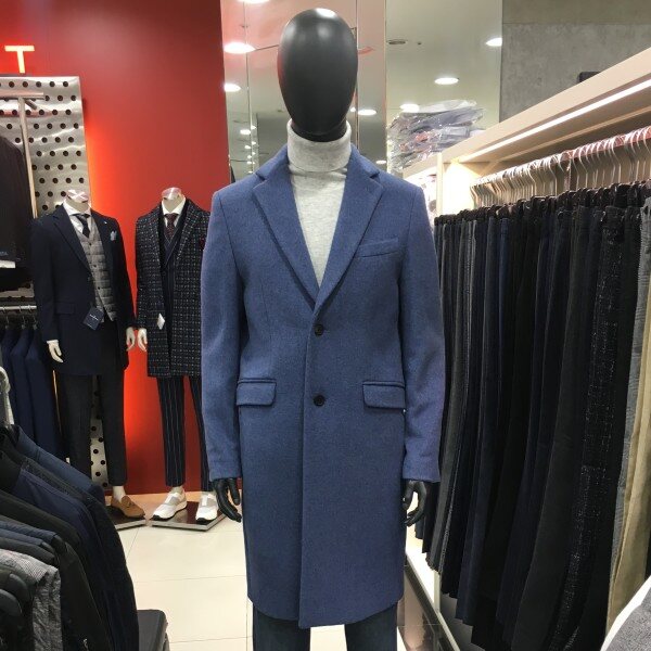멜란지 블루 컬러의 일자로 떨어지는 기본 클래식 롱코트입니다.