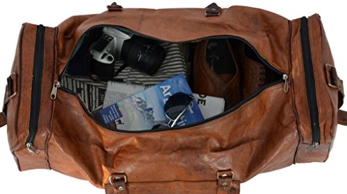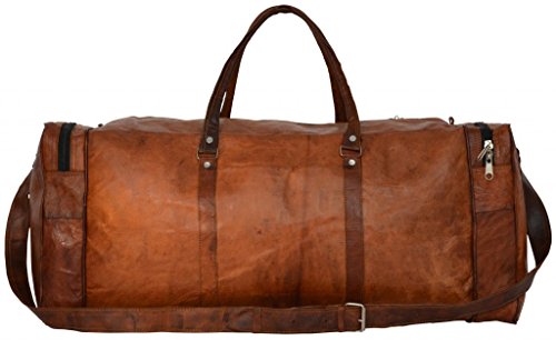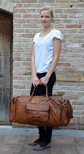 -. Feature : Buy Only from A JAALD STORE for authentic product. Dimensions(WxHxD): 24 x 11 x 10 in (64 x 29 x 24 cm), 1 main internal compartment and 2 zip pockets, 1 exterior front pocket with buckle fastening / This stylish, brown shoulder bag is also ideal for use as a: shopping bag, travel bag, camera bag, or gym bag and it stands with its classic yet unusual design. / Naturally (using vegetable oil) tanned Fair Trade goatskin produced by small household / This trendy leather bag can also be used as a: cross-body bag, leather bag, gift idea, birthday present, christmas present, vintage bag, quality bag, unisex bag, womens bag, ladies bag, girls bag, leisure bag, everyday bag, real leather bag, brown bag and medium bag. / This fantastic, in-style and yet practical leather bag is perfect to use as an travel bag, festival bag, weekend bag or as gym bag
