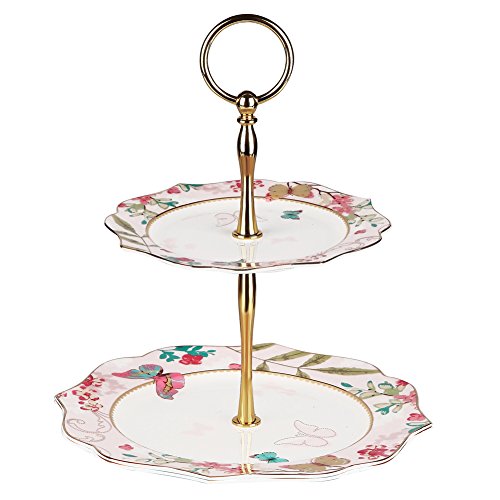 (AWHOME)/Kitchen Dining/Cook's Tools Gadgets/DIRECT FROM USA/AWHOME 2 Tier Bone China Cake Stand Cupcake and Dessert Centerpiece for Wedding Party Garden St...