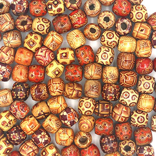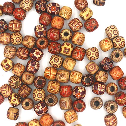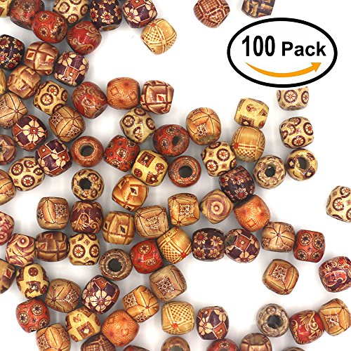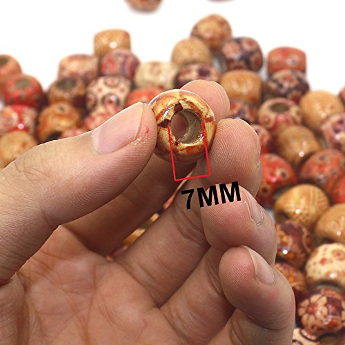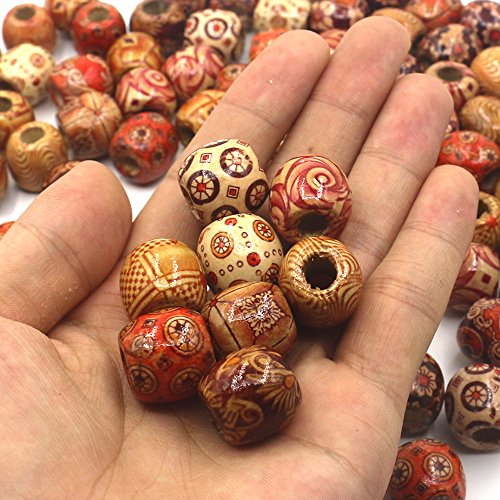 Mahoo 100Pcs 17mm Wooden Beads Round Painted Pattern Barrel DIY Loose Wood Beads for Jewelry Making Bracelet Supplies, Crafts, Hair