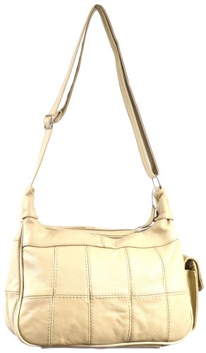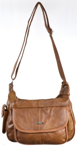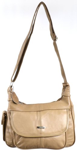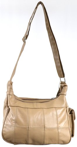 Product Description Ladies Leather Shoulder Bag / Handbag with Mobile Phone Pocket. ( Black / Brown / Fawn / Tan / Beige ). Approx sizing. Length: 30cm, Width: 9cm at base, Height: 20cm. Adjustable Shoulder Strap 120cm. Full Lined with Material to Match Bag Colour. 2 Main Top Zipped Compartments. Inside there are 2 Pouches and 1 zipped Pocket. 1 Front Pocket with Folder Over Flap and Magentic Clasp. Outside Mobile Phone Pouch with Velcro Fastner 0