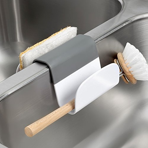 Spectrum Diversified Cora Sink Saddle Holder for Sponges, Scrub Brushes, Soap, - Gray/White