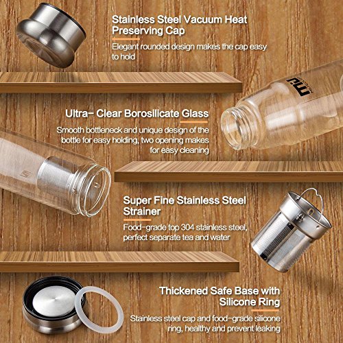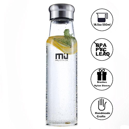 -. Feature : 【Summer Sales】20% OFF on each MIU COLOR glass bottle with code MCBOTL20 Ending Time: 7/31/2016 / SURP.R.ISING GIFT : Gift 1: Portable and Colorful Nylon Sleeve Gift 2: Bottle Brush for your easy washing / GET HEALTHY DRINK: MIU COLOR Glass Bottles made of High Borosilicate Glass and Stainless Steel, BPA and PVC Free, No Lead and toxic chemical / HIGH QUALITY: Ultra-Clear Borosilicate Glass make it more Solid and Durable, Sealed and High Heat Resistant, can stand from -4℉ to 266℉ / GREAT VALUE: You can use the bottle normally whether with infuser in or with infuser taking out. Just refill it with tea or any fruits you like. Perfect for everyday use, outdoor, office, car, traveling, bike, running, fitness, exercising