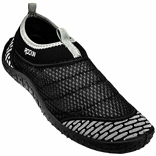 Studio : Rockin Footwear Publisher : Rockin Footwear Binding : Apparel Product Description Rock in aqua power men's water shoes are fun, versatile and the perfect choice for water aerobics, the beach, the pool, canoeing or any aquatic adventure. These aqua foot shoes come in beautiful colors and sizes for men, women and kids. Browse our other collections of water shoes/aqua socks for men, women and kids. Rockin Footwear. 0