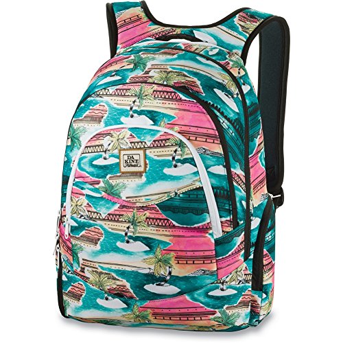 The Prom got everything you need in a great looking school pack. You'll also appreciate the comfort of the yoked straps for carrying even the heaviest load. Details: Fits most 14'' laptops, padded laptop sleeve, fleece lined sunglass pocket, organizer pocket, deployable water bottle pocket, insulated cooler pocket, limited lifetime warranty. If your bag gets dirty, Dakine recommend hand washing with mild soap (like Nikwax Tech Wash), cold water and a soft bristle brush. If hand washing is not going to do the trick, use a front loader washing machine. To ensure your backpack doesn't get tangled, place inside a pillowcase or mesh bag before washing. Always use cold water, mild soap and run on a gentle cycle. Never bleach your pack. Hang to dry in a warm but shady place, ensuring both inside and out are dry before storing. Dimensions: 1500 cubic inches (25 liters), 18'' x 12'' x 9'' (46 x 30 x 23cm). Material: Polyester.Feature