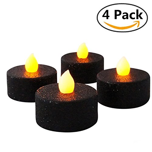 Christmas LED Candle Tea Lights - Gold Glitter, Orange Flickering Flame Christmas Lights, Black, Set of 4