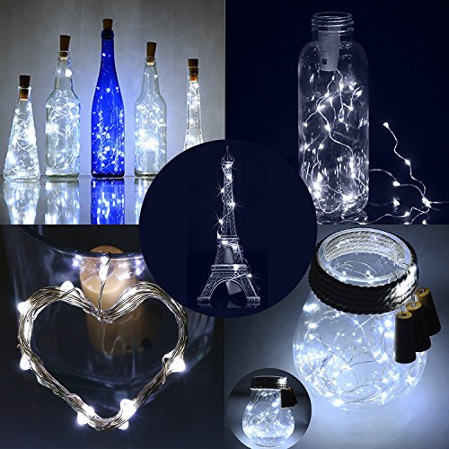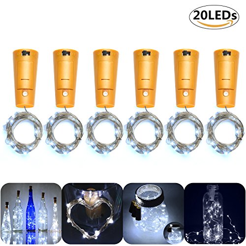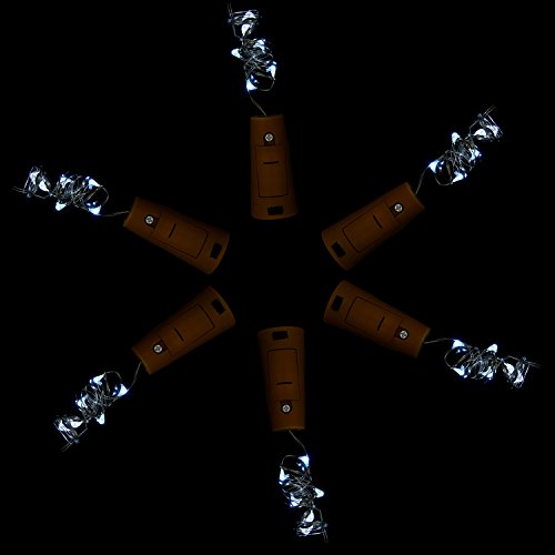 Glückluz Wine Bottle Cork Lights 20 LED Low voltage Copper Wire Lights String Starry Fairy Indoor Decoration for Bottle DIY, Party, Christmas, Halloween, Wedding, Ceremony (Cool White)