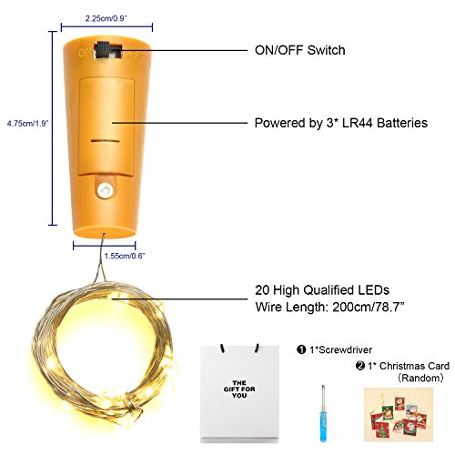 - ◆EASTY TO USE -Easy to turn it on and off by switch. Our wine bottle cork light is easy to fit into the top of the wine bottle. Just Simply Switch on the Lights and Enjoy these Amazing Fairy Lights.