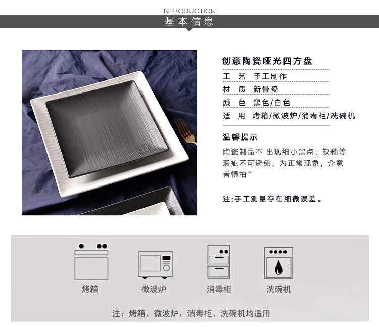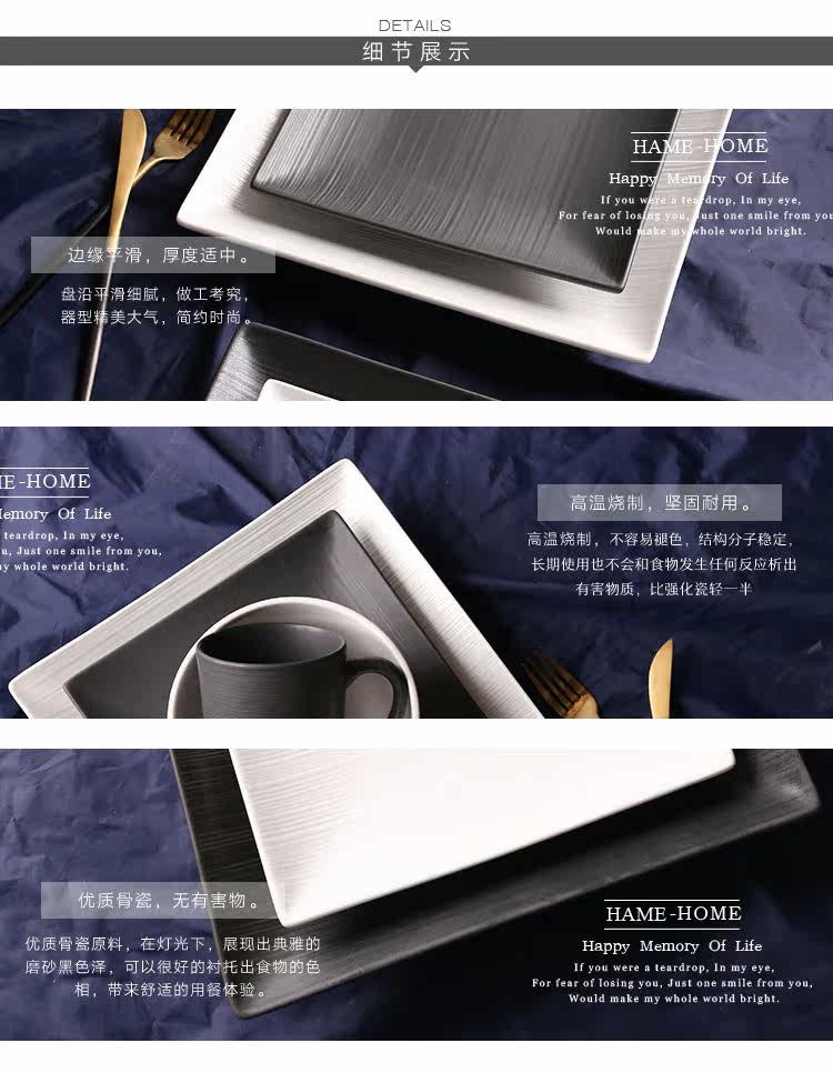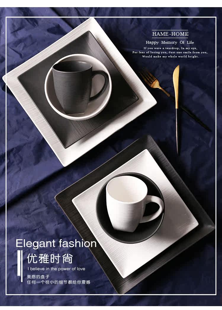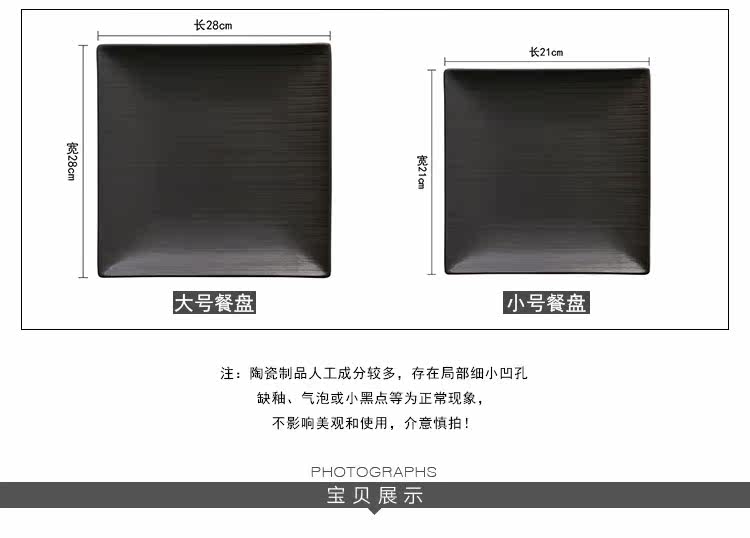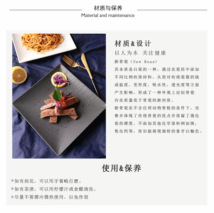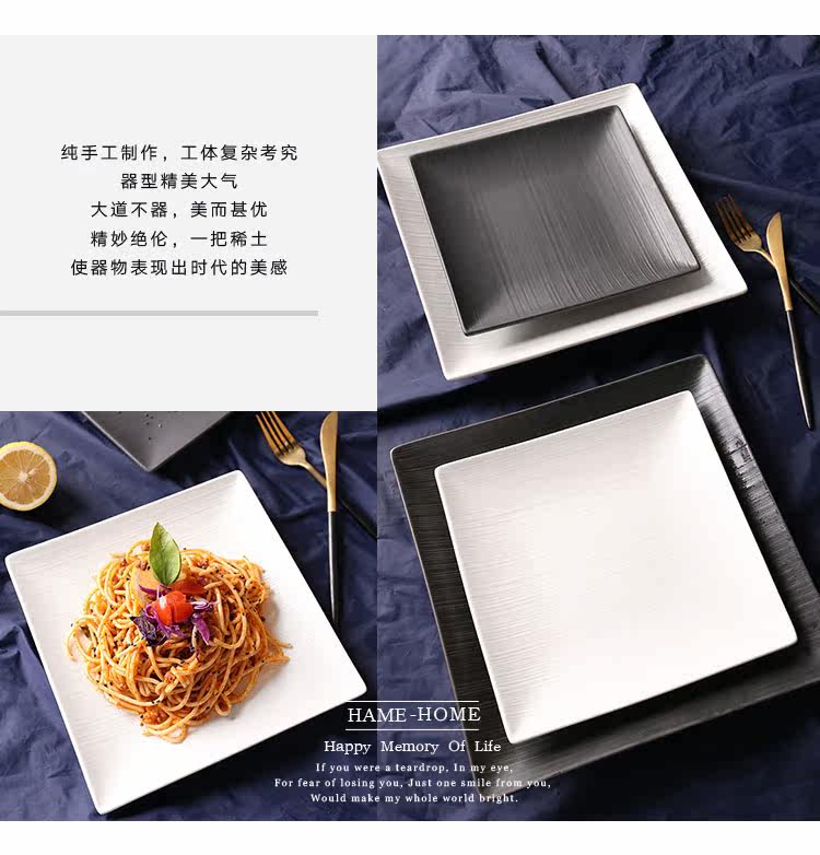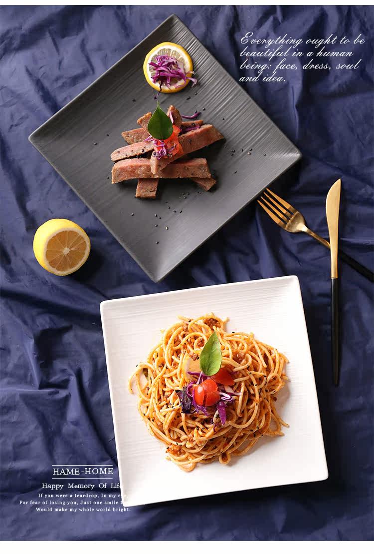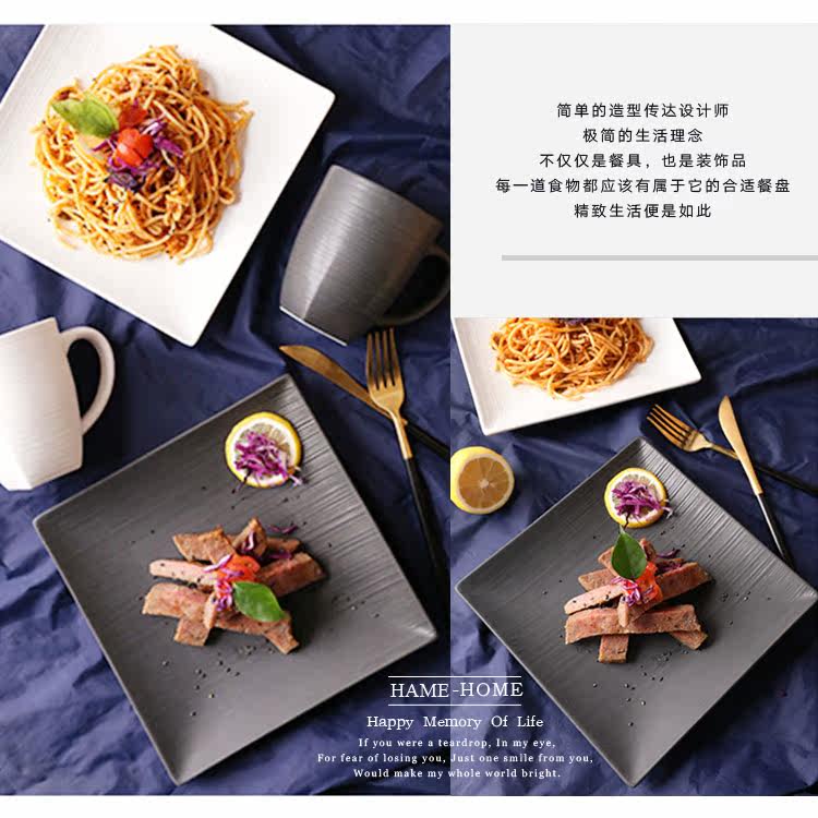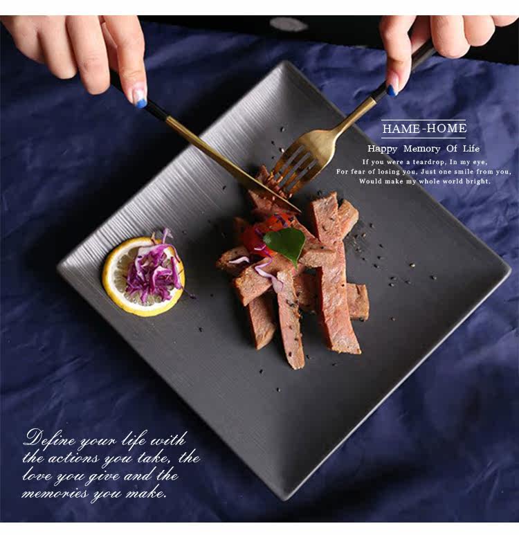 创意西式餐盘四方陶瓷牛排盘意大利面盘西餐盘家用陶瓷盘黑色盘子