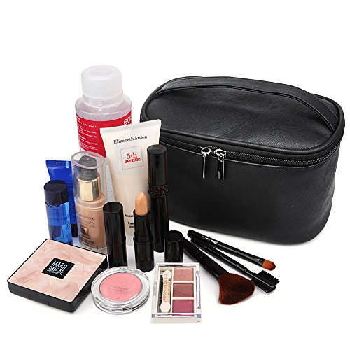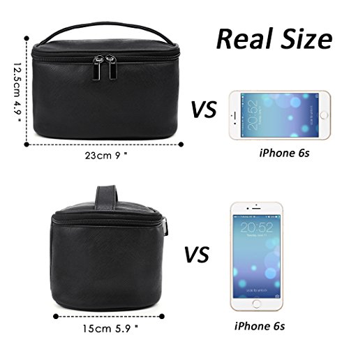 - Made of high-quality of PU leather, which is waterproof material and also makes cosmetic case clean easily. Exterior Dimensions: 8.7"L x 5.5"W x 4.7"H