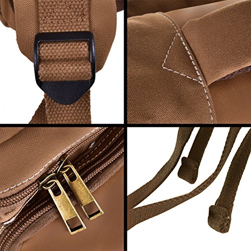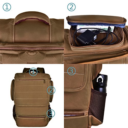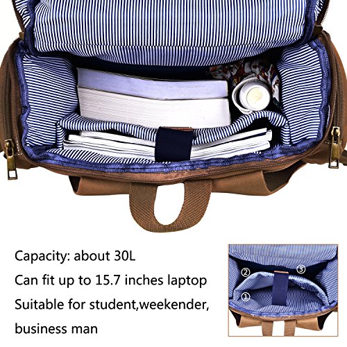 -. Feature : Dimensions: 18.9 x 14.9 x 6.2 inch with dedicated Laptop compartment holds Laptops up to 16 Inch / Main material: The main material of this backpack is Canvas,durable and cool style.It is very attractive and perfect for college, school, travel and outdoor activities / 10 Multi-Pockets: 1 main pocket, 1 inner laptop compartment pocket,1 innner mesh pockets, 3 front pocket, 2 side zipper pocket and 2 side mesh pockets / Easy-Access:Unique wide dual-zippered on the top of the backpack, provides a quick and easy access to the main comparment, and the pocket on front side keep your valuables hidden. / Warranty: All of our bags have 1-YEAR WARRANTY. If you have any problems with your bag, please feel free to contact us