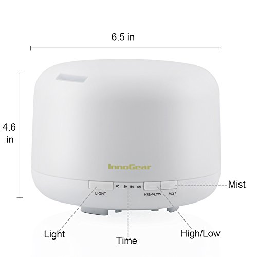 InnoGear 500ml Aromatherapy Essential Oil Diffuser Cool Mist Humidifier Waterless Auto Shut-off with 4 Timers and 7 LED Color Changing Lights