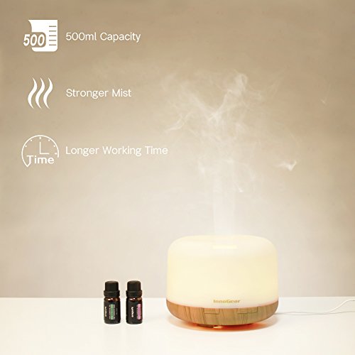 InnoGear 2017 Premium 500ml Essential Oil Diffuser 5 In 1 Ultrasonic Aromatherapy Fragrant Oil Vaporizer Cool Mist Humidifier Air Purifier 7 LED Night Light with Waterless Auto Shut-off and Timers