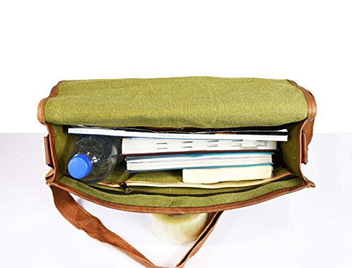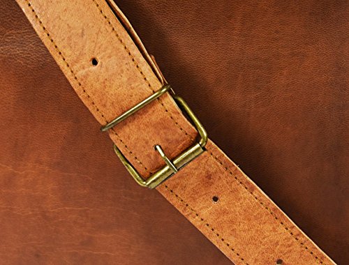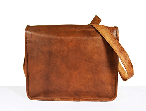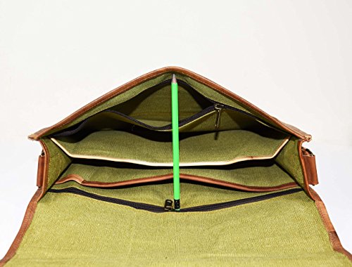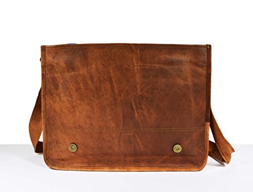 -. Feature : 100% Authentic : Average leather messenger bags are cheap & fake, but yours is handcrafted with genuine goat leather. Red, eco-friendly & affordable. / Dimensions: 15x11x4 Inches. / Strong & Durable: Brass Fittings & Buckles, YKK Zippers, Olive Green Heavy Duty Canvas Lining....Built to Last: This leather satchel features quality stitching, brass buckles & strong zippers. Ultra-durable, reliable & secure. Even has heavy-duty Canvas & Velcro strap to protect contents. / Deep Essentials Handy: With 2 +1 compartments , 2 Inner Zipped Pockets & One External Zipped Pockets, your 15-inch shoulder bag is perfectly sized for tablets, laptops, notebooks & more. Ideal for office, college & school. / Multiple Carry Options: With a convenient, adjustable shoulder strap & sturdy handle, this brown laptop bag can be worn on shoulder, cross body or in hand. Great for bikes & buses.