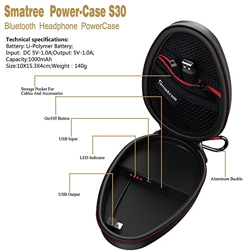 -. Binding : Wireless Phone Accessory -. Brand : Smatree -. Feature : ★★SAVE $15★★by using code: 7NUDAM7X at check out.☆Only for first 100 orders.☆ / Unique and Patent Design: A case with built-in power bank (Headphone is NOT included) enables you to carry /storage and charge your Jaybird,Beats, , Sony,Jabra and other most Sport Wireless Bluetooth Headphones at the same time / Large Capacity: The power bank's capacity is 1000 mAH. You can charge your bluetooth headphone 6-8 times which depends on your headphone types . It greatly saves your time and provide more convenience no matter at home or traveling / Automatically Turn On/Off: The power bank will turn on automatically when you connect headphone to the charging cord and turn off automatically when your headphone is fully charged / Mesh Pockets: Elastic mesh pocket with a zipper keeps your small accessories in good condition -. Label : Smatree -. Manufacturer : Smatree -. MPN : Smatree-SC035 -. PackageQuantity : 1 -. PartNumber : Smatree-SC035 -. ProductGroup : Wireless -. ProductTypeName : WIRELESS_ACCESSORY -. Publisher : Smatree -. Studio : Smatree -. Title : Smatree Wireless Headphone Power-Case S30 with Built-in power bank for Jaybird and other most Sport Bluetooth Headphones-Headphone is Not included