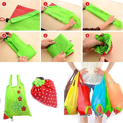 Generic Foldable Reusable Bag Polyester Strawberry Shopping Bags Grocery Bags Pack of 10