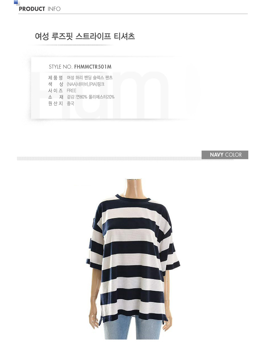 - 여성용 루즈핏 스트라이프 티셔츠입니다