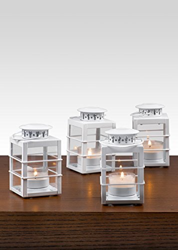 -. Feature : Sold in set of 4 / White metal / Holds tea lights / 2.5in D x 4in H