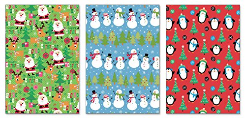 Pack of 3 Rolls of Christmas Gift Wrapping Paper "Holiday Friends" 3 Different Designs 40" x 9' (30 Sq Ft) Rolls of Gift Wrap