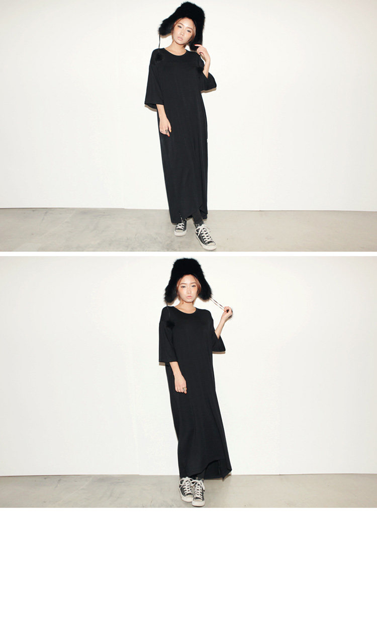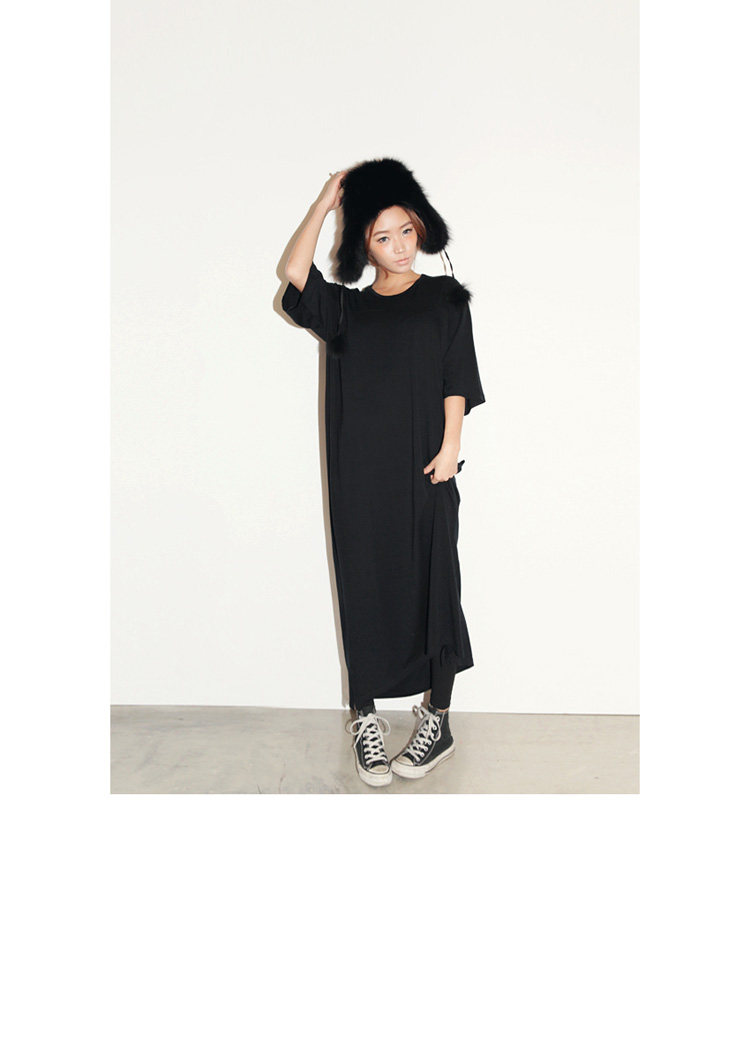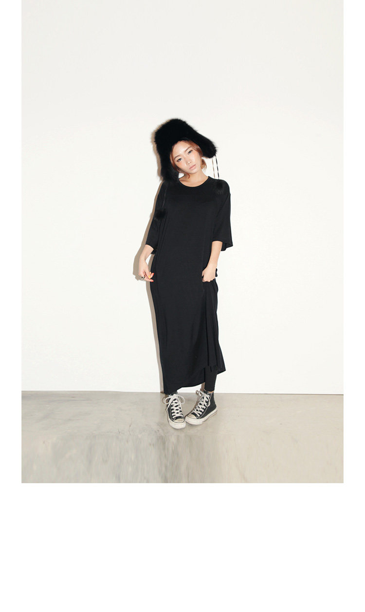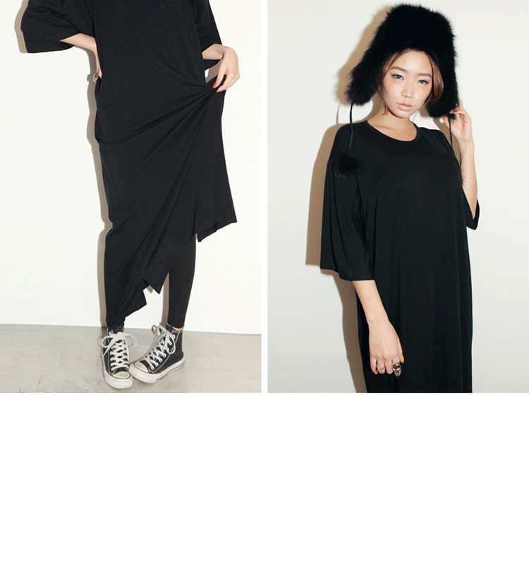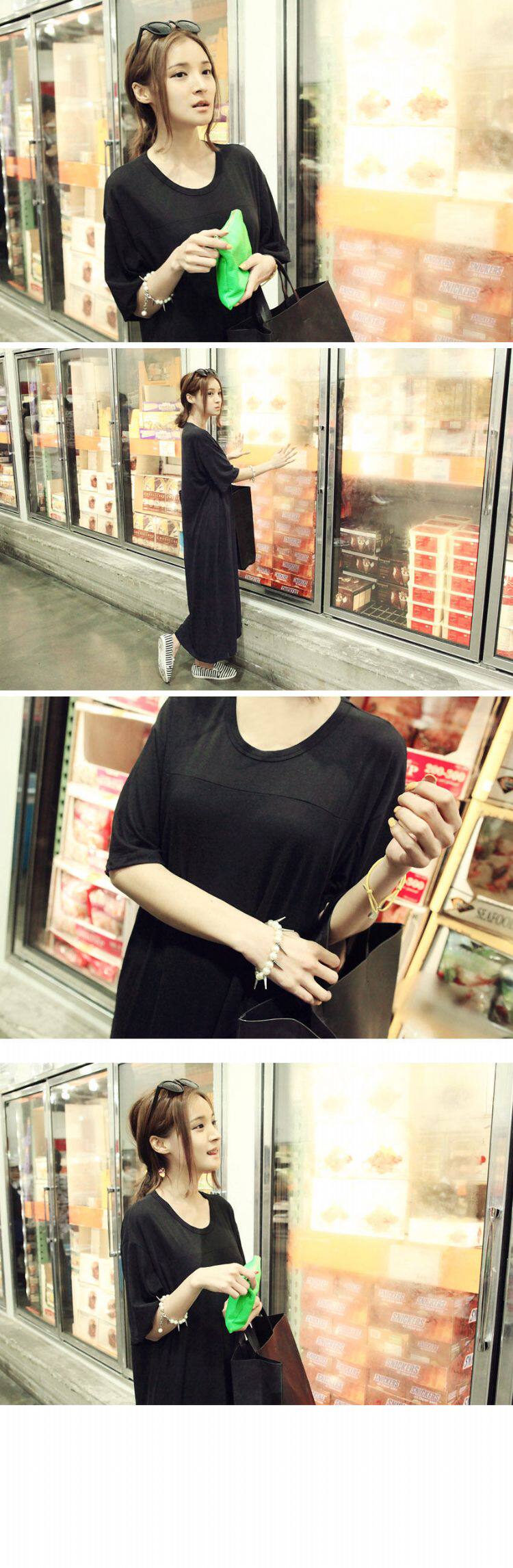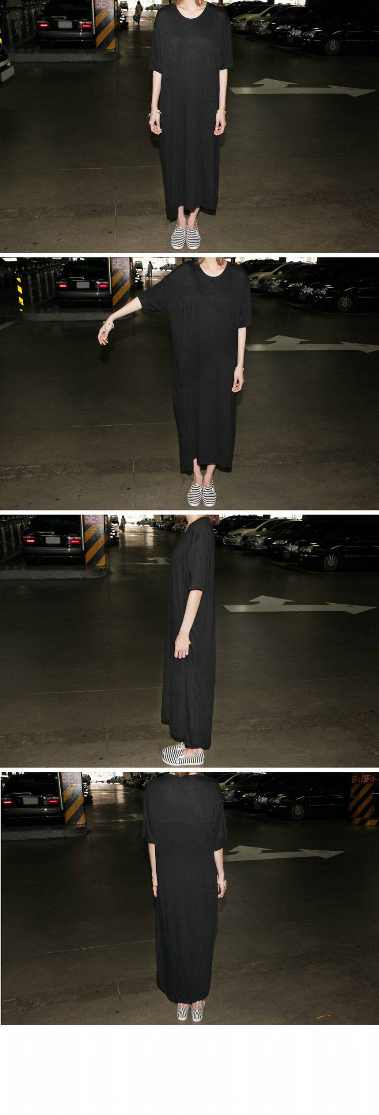 掌柜推荐 | 2016新款夏装韩版女装休闲气质大码宽松短袖连衣裙黑色莫代尔长裙 | |